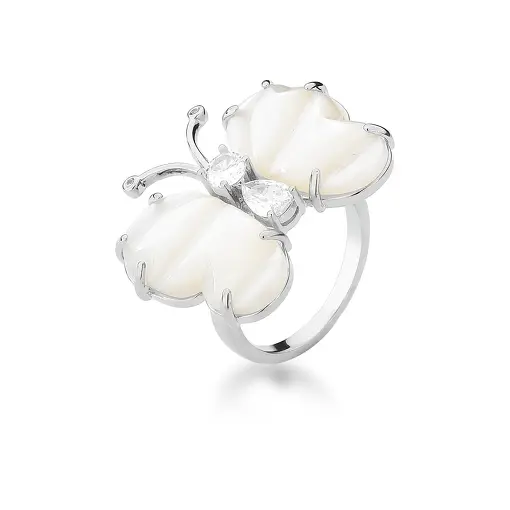 ANEL BORBOLETA VAZADA E LISA EM PRATA ENVELHECIDA