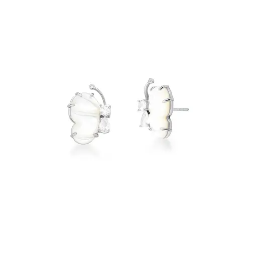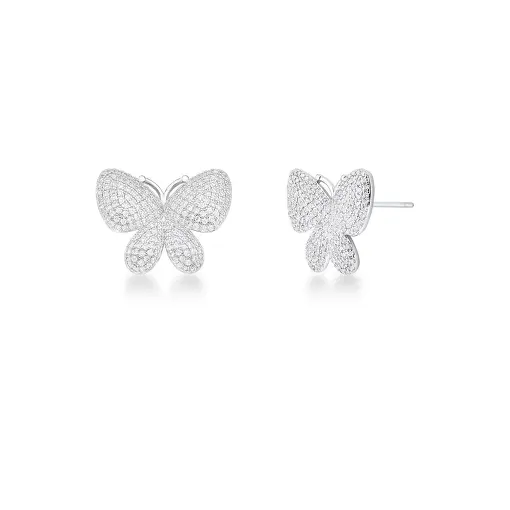 BRINCO DE BORBOLETA CRAVEJADO DE ZIRCÔNIAS BANHADO A RÓDIO