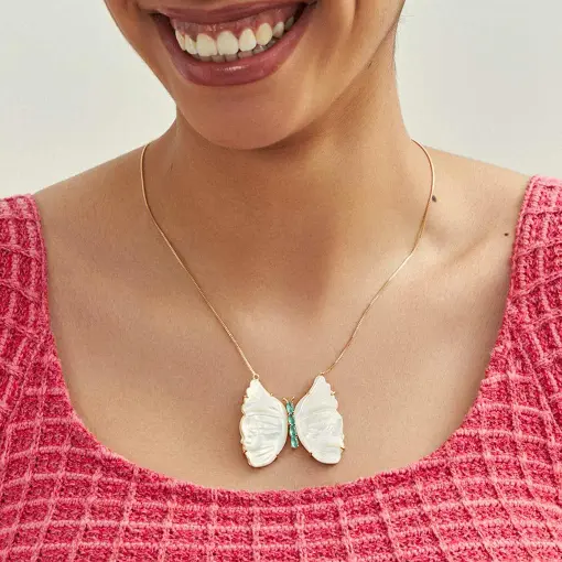 COLAR COM PINGENTE BORBOLETA EM MADREPÉROLA BANHADO A OURO