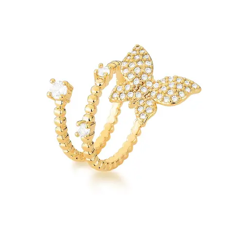 ANEL TRÊS VOLTAS COM BORBOLETA CRAVEJADO BANHADO A OURO