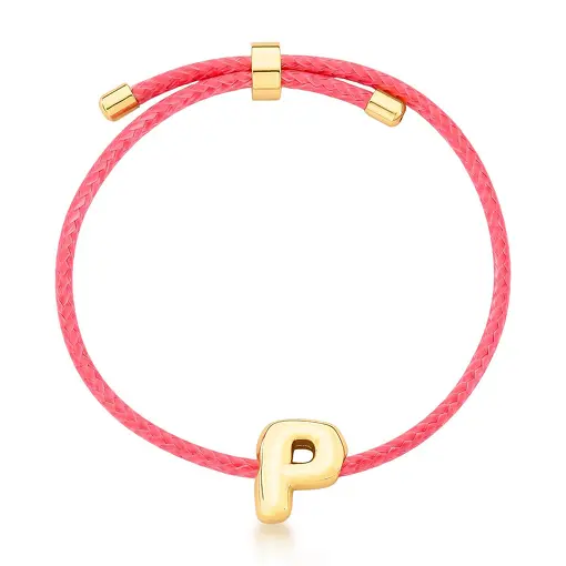 PULSEIRA KIDS FIO ENCERADO LETRA "P" BANHADA A OURO