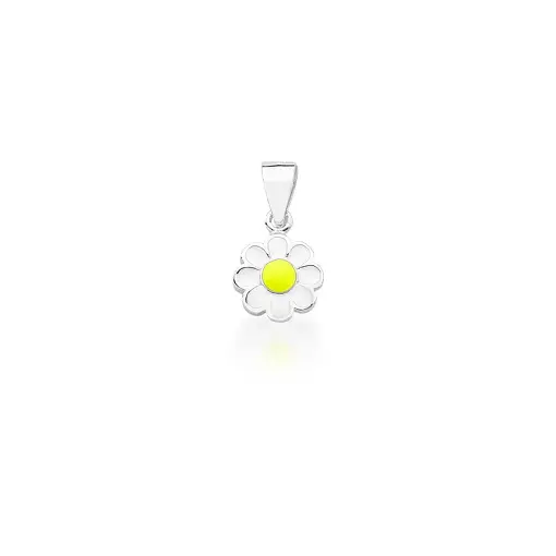 PINGENTE KIDS DE FLOR ESMALTADO BRANCO E AMARELO PRATA LISA