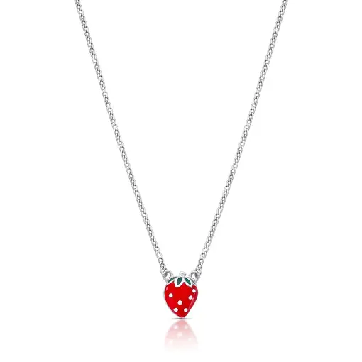 COLAR KIDS DE MORANGO ESMALTADO PRATA RODINADA