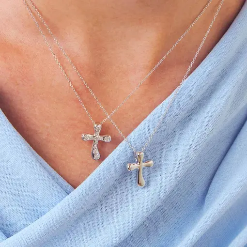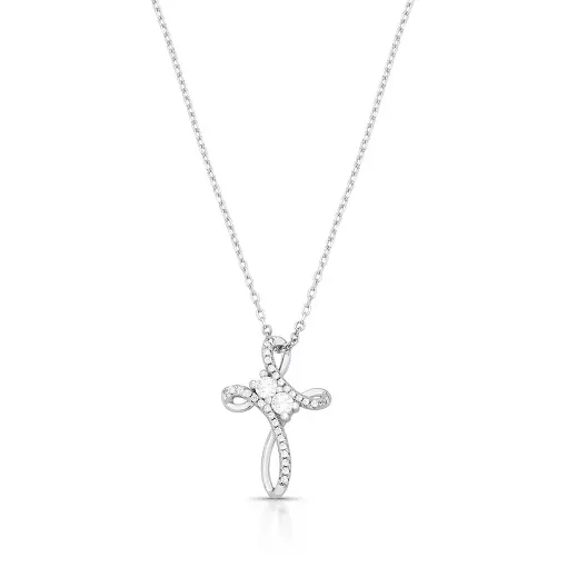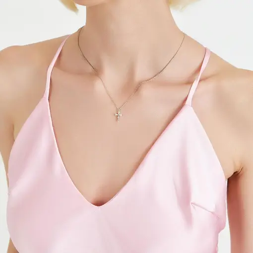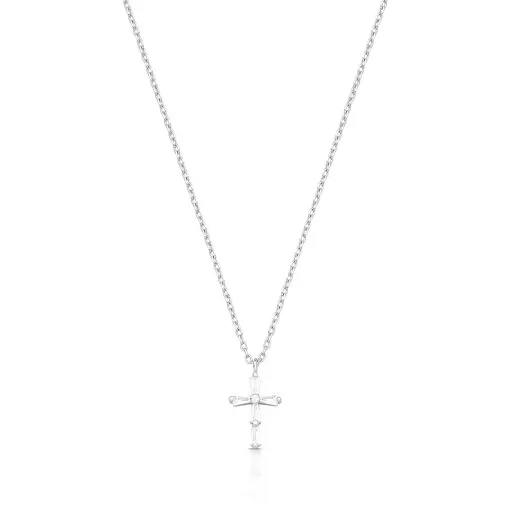 COLAR COM PINGENTE CRUZ COM CRISTAIS REDONDOS PRATA RODINADA