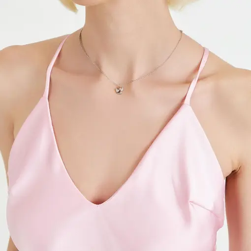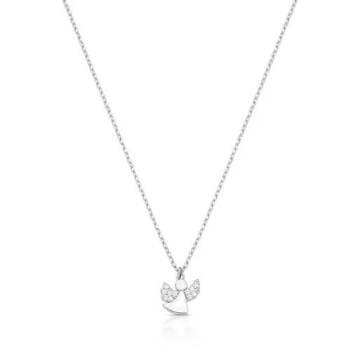 COLAR COM PINGENTE DE ANJO EM ZIRCÔNIAS PRATA RODINADA