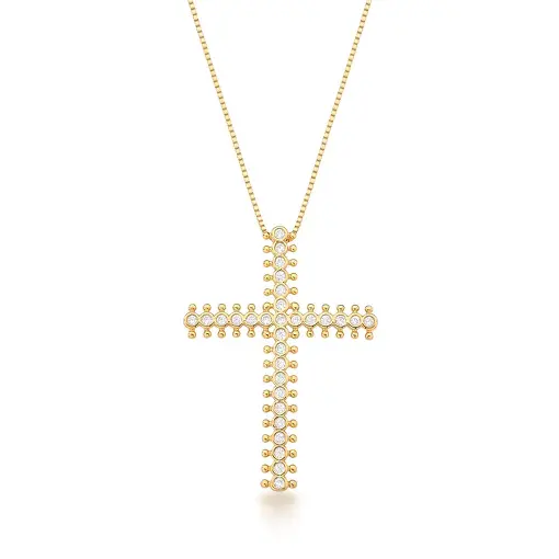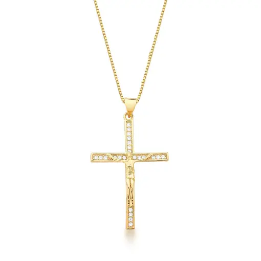 COLAR COM PINGENTE DE CRUZ COM CRISTAIS BANHADO A OURO