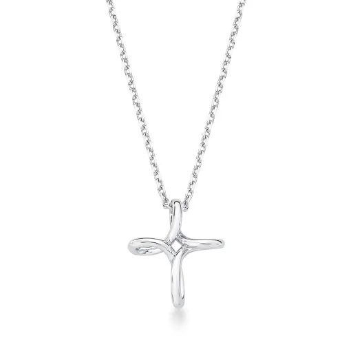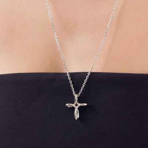 COLAR COM PINGENTE LISO CRUZ CURVO PRATA RODINADA