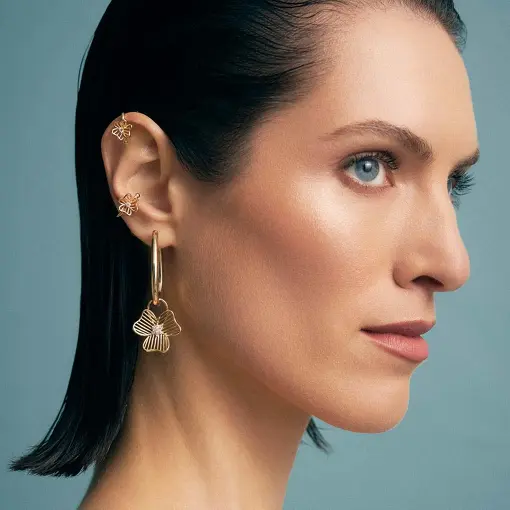 BRINCO DE FLOR EAR JACKET COM CRAVEJADO DE ZIRCONIAS
