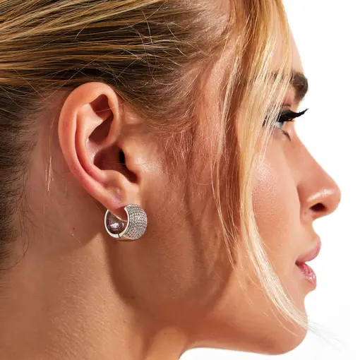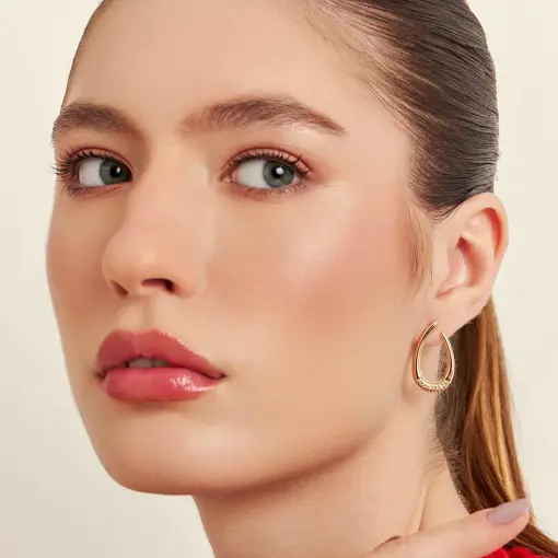 ARGOLA OVAL EM "X" COM ZIRCÔNIAS