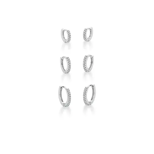KIT TRÊS PARES DE ARGOLAS COM ZIRCÔNIAS BRANCAS