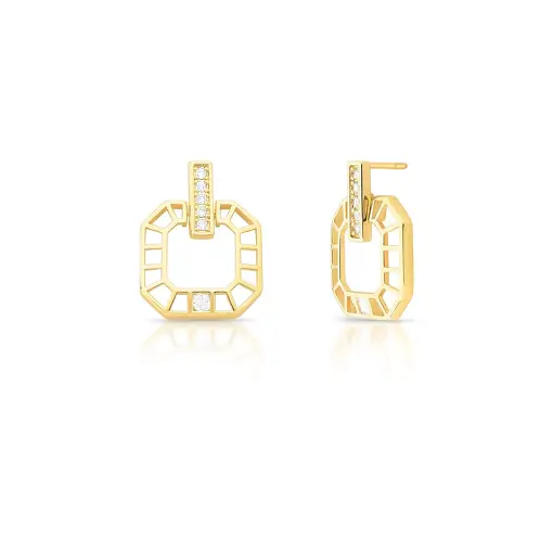 BRINCO QUADRADO VAZADO E CRAVEJADO BANHADO A OURO