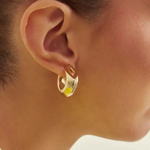 ARGOLA GEOMÉTRICA REDONDA E VAZADA BANHADA A OURO
