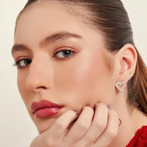 BRINCO DE CORAÇÃO VAZADO CRAVEJADO DE ZIRCÔNIAS