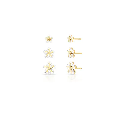 TRIO DE BRINCOS COM FLORES EM CRISTAIS